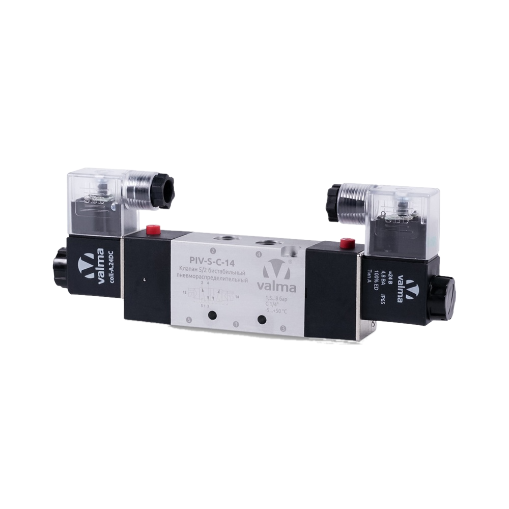 PIV-S-C-14.24DC Клапан пневмораспределительный 5/2 бистабильный, G 1/4''